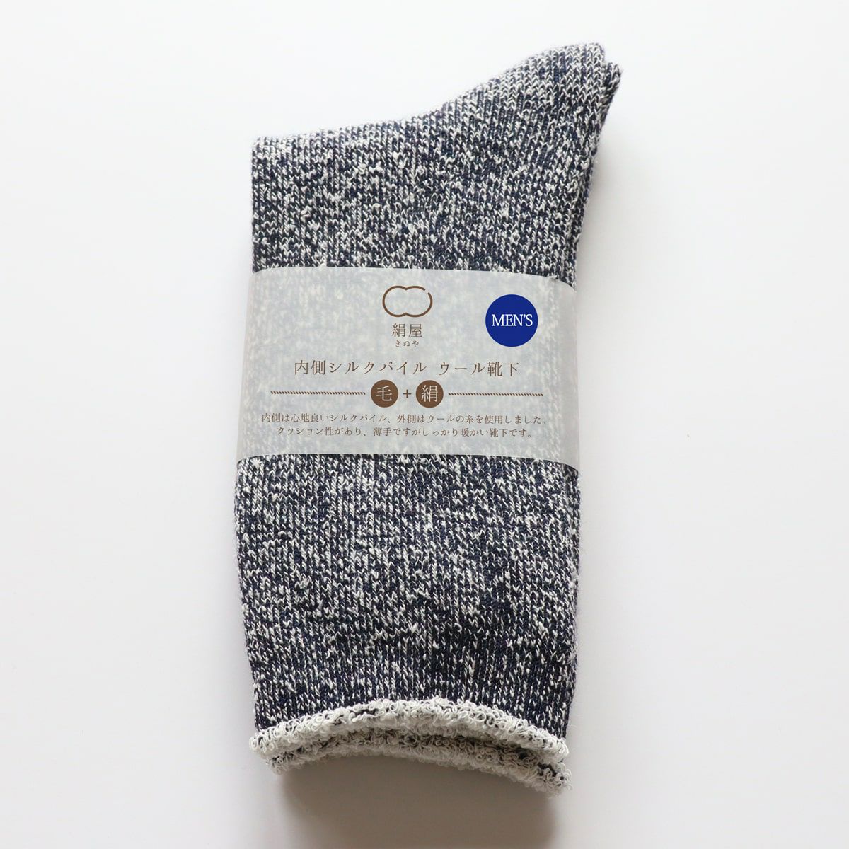 絹屋 メンズ 内側シルクパイル ウール靴下