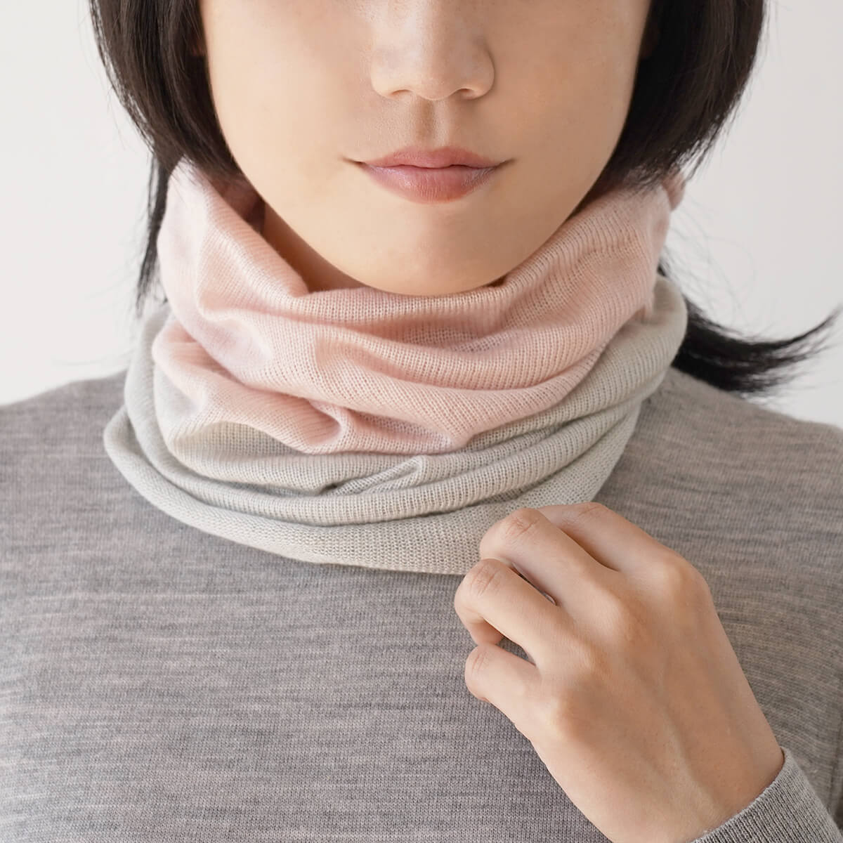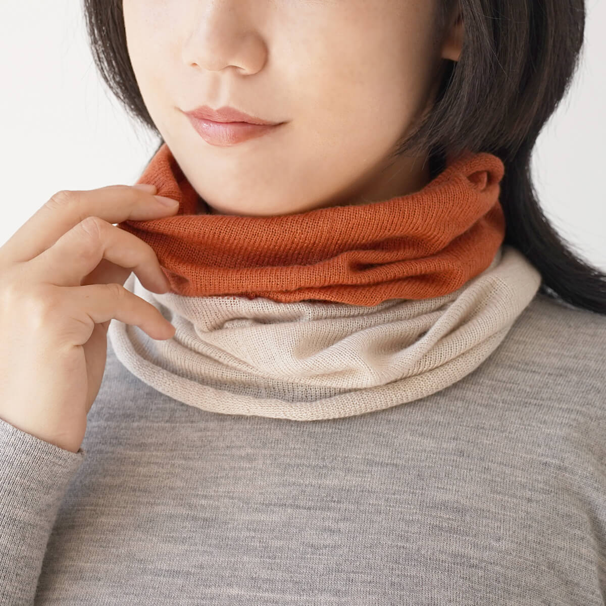 繊細で、なめらかなシルクを使用したとても柔らかく、極上の肌触りのネックウォーマー。