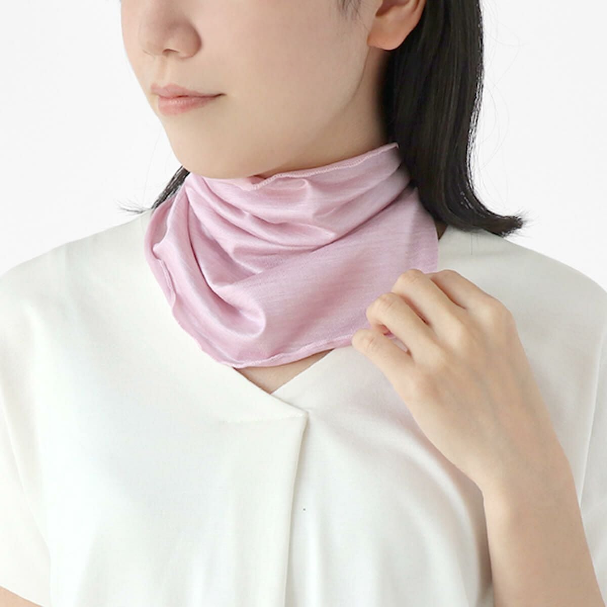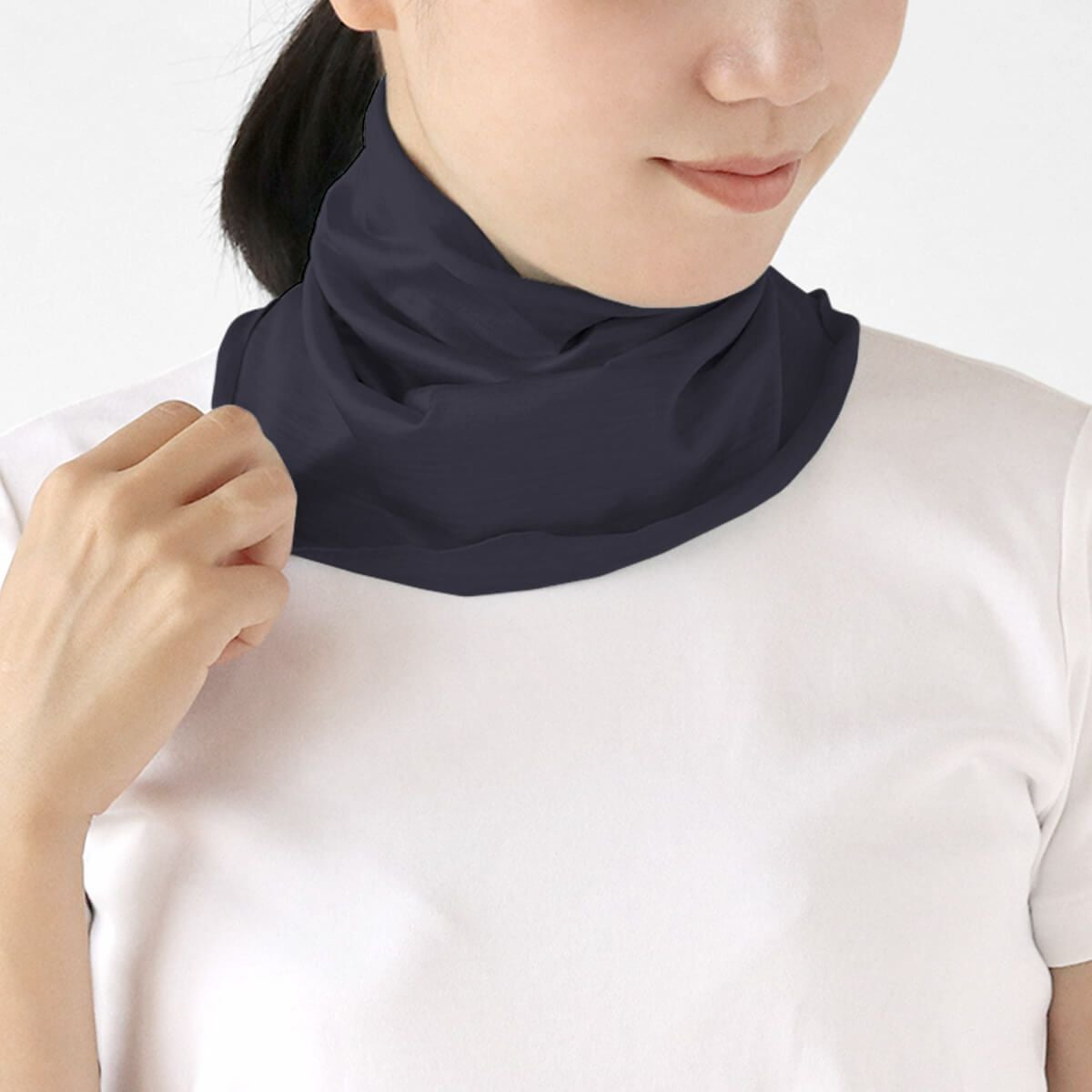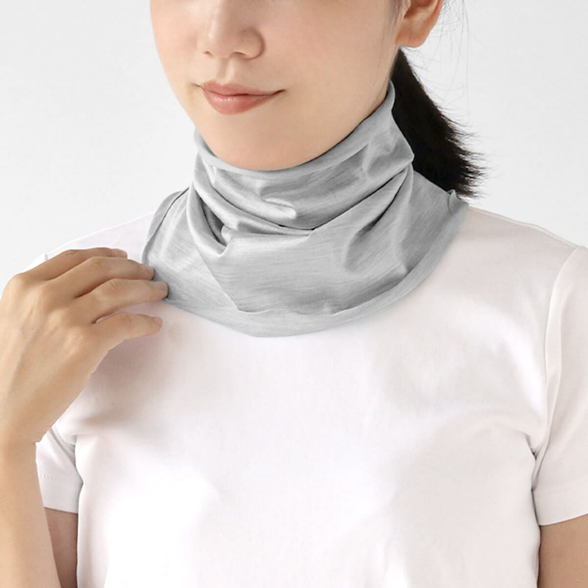 接触冷感のシルクを使用した、ひんやり冷たいネックカバー。シルク混率が高く、滑らかな肌触りで、化学繊維が苦手な敏感肌の方にもおすすめです。シルクが首元の汗を素早く吸うため、生地が肌に張り付かず、暑苦しさがありません。