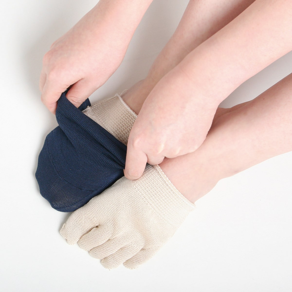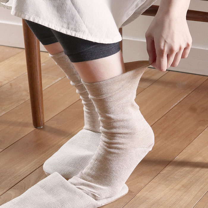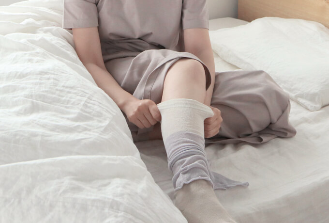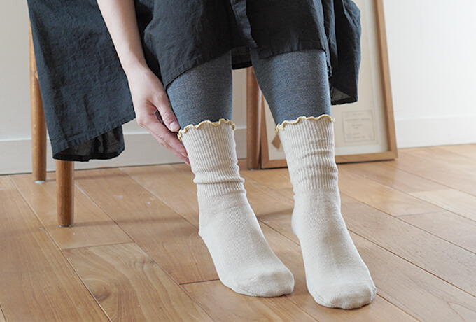 化学繊維は吸湿・放湿性が低いものが多く、化学繊維の靴下を履くことで、靴下に汗が残り、汗冷えが起こりやすくなります。