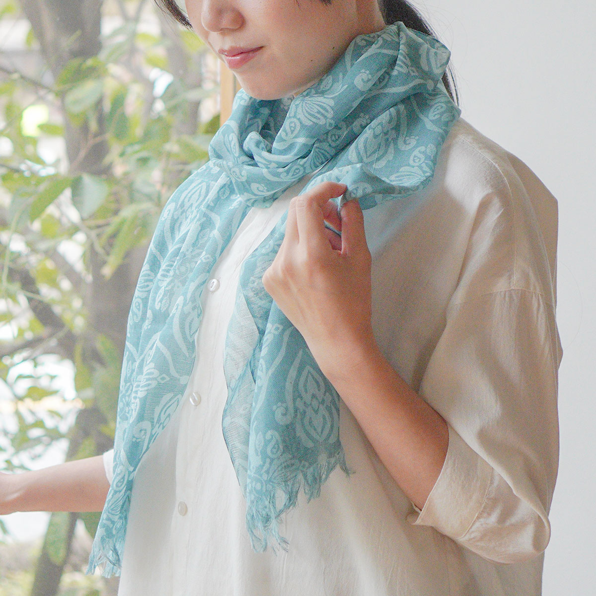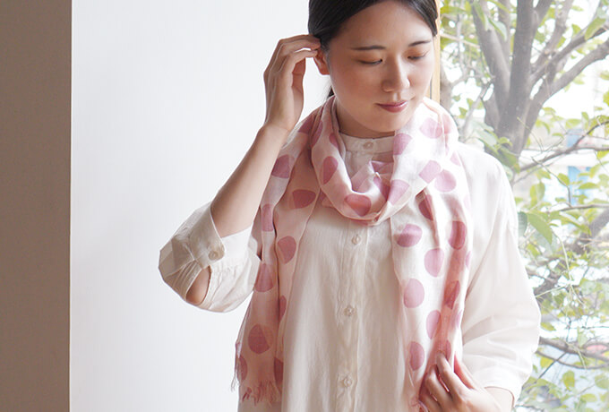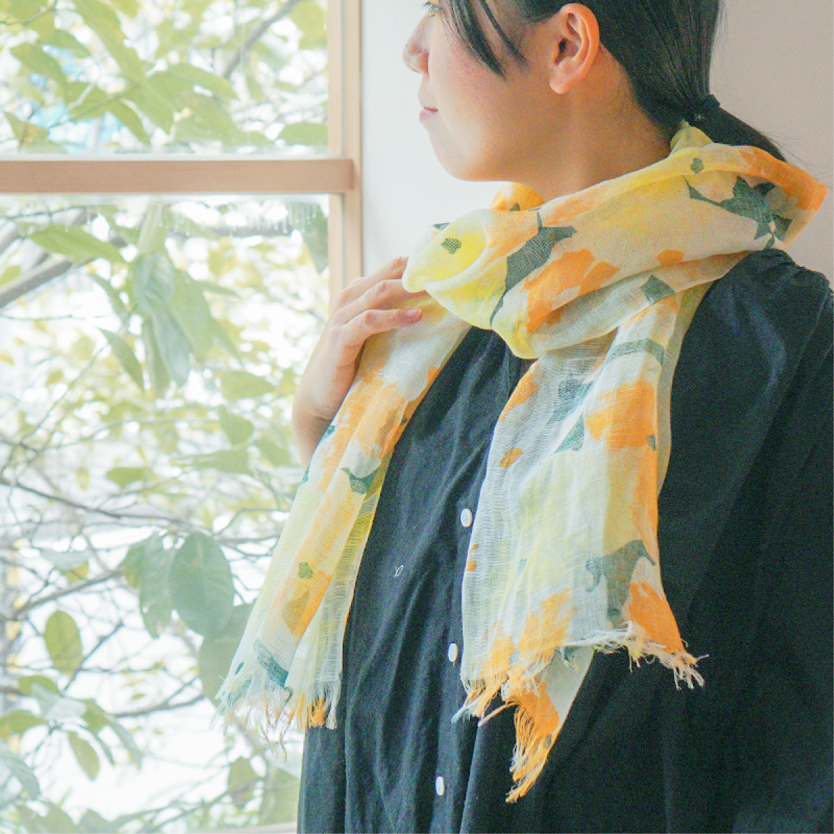 ストールやスカーフなど、ファッション性の高い商品が多く、大きめのストールはショールとして肩にかけて使用することもできます。