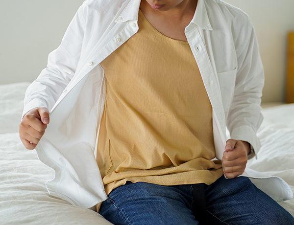生地に深い凸凹(シボ)があり、肌への接触面積が少ないため、