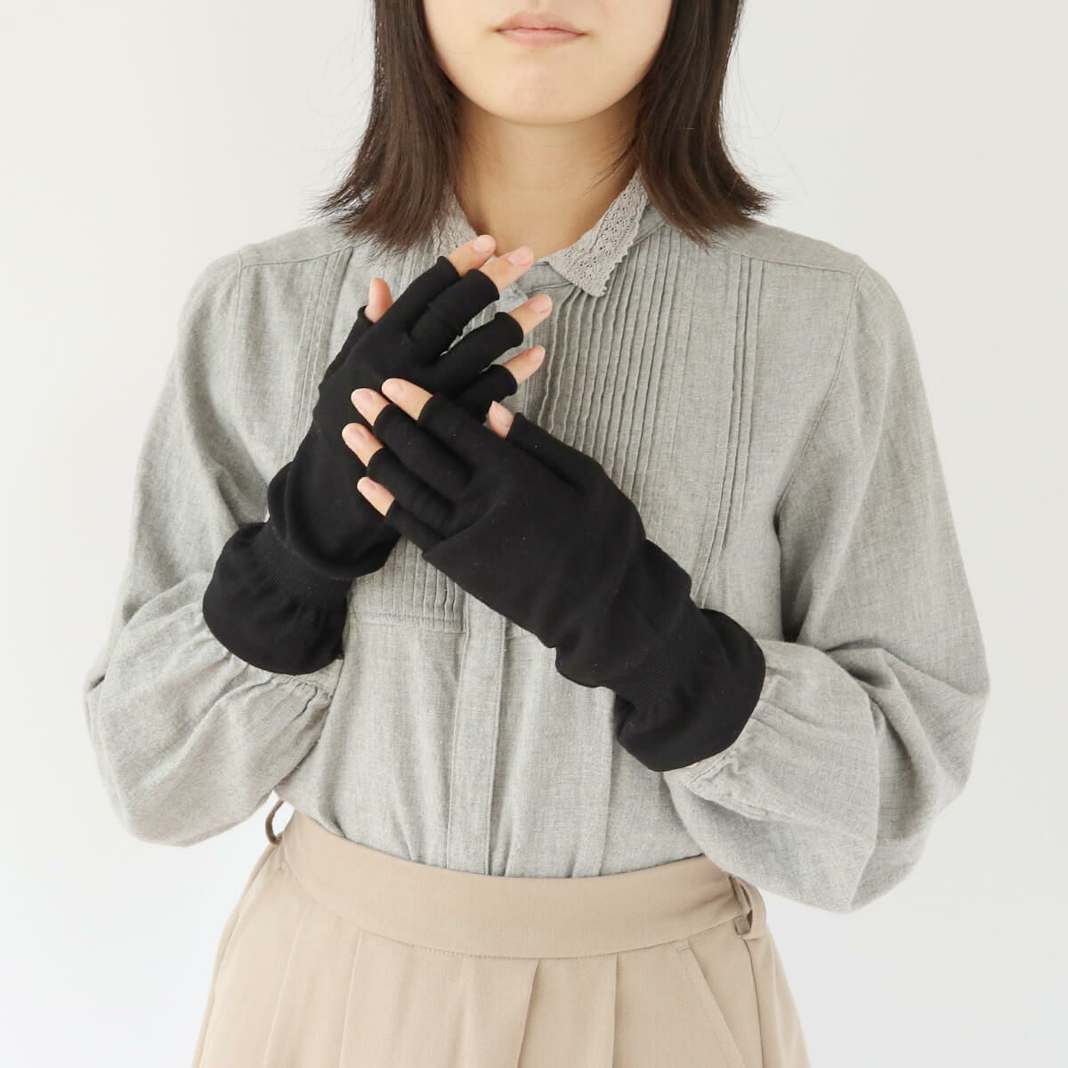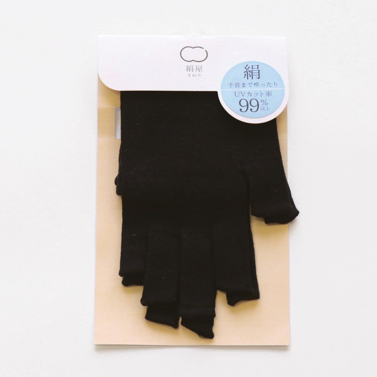 絹屋 内側シルク 指切りアームカバー ショート丈