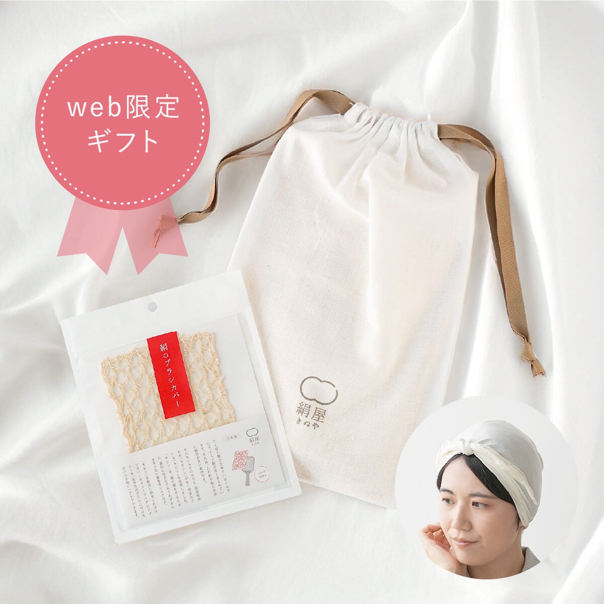シルクのヘアケアセット おやすみターバン×絹のブラシカバー