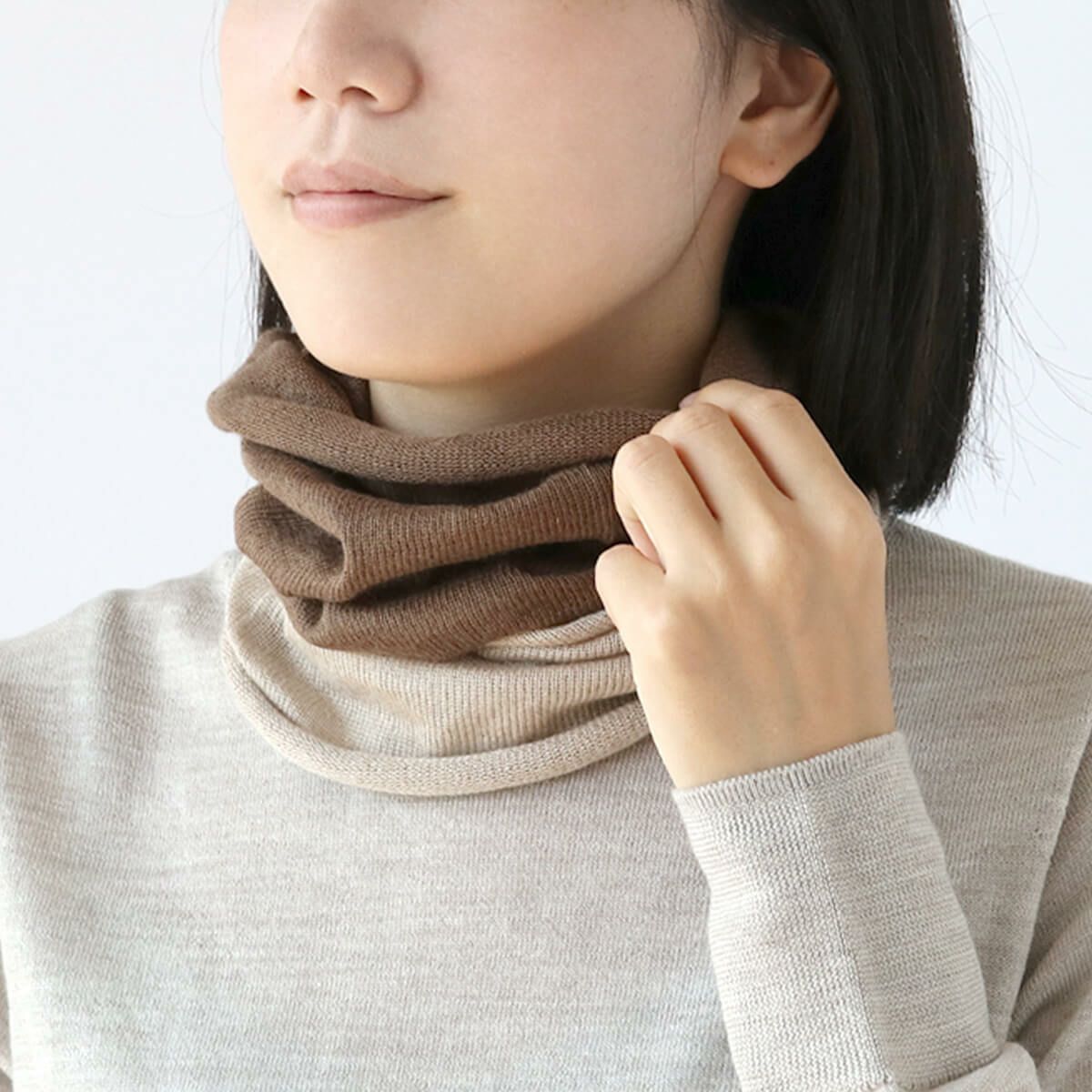 絹屋 内側シルク 外側ウール 2重編みネックウォーマー